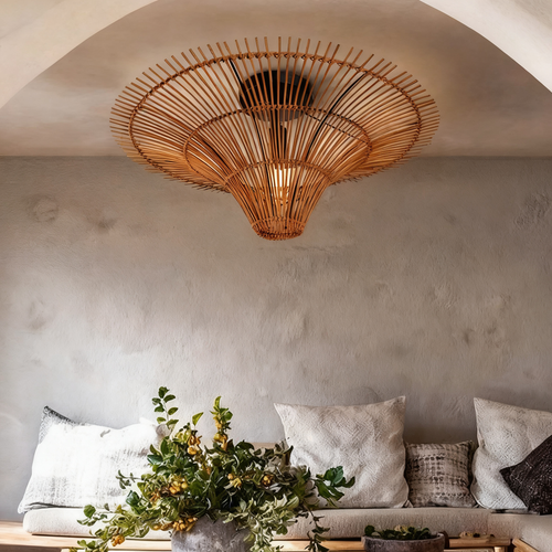 View AllHandwoven Rattan Basket Pendant Light – Boho Coastal Ceiling Lamp