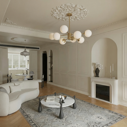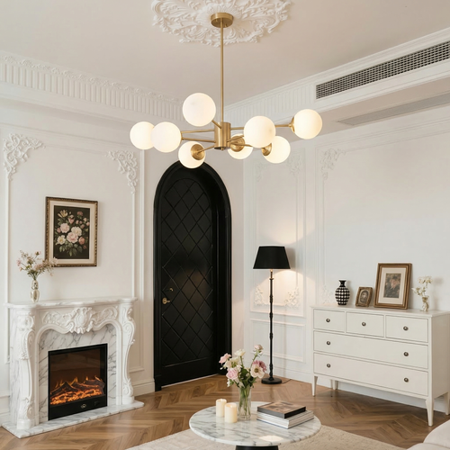 8-light Sputnik Gold Chandelier Brass Ceiling Light Opal Globe Molecular