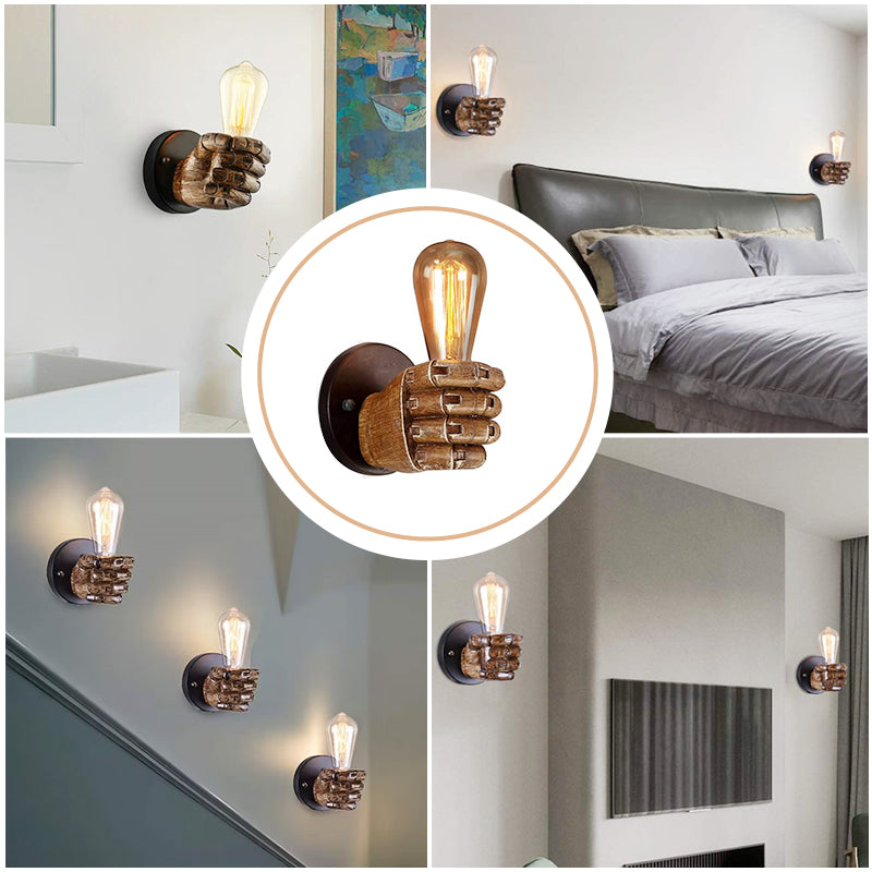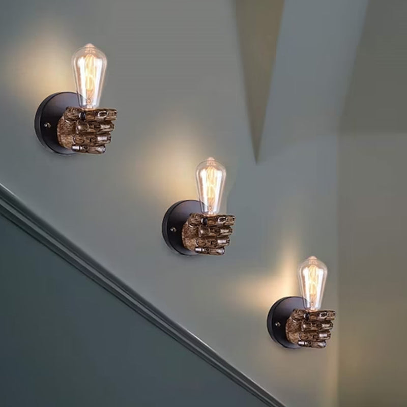 - This crafted vintage style wall sconce with creative fist shape is simple but bring you power. Give a new dimension to your wall with this industrial style indoor wall light.
