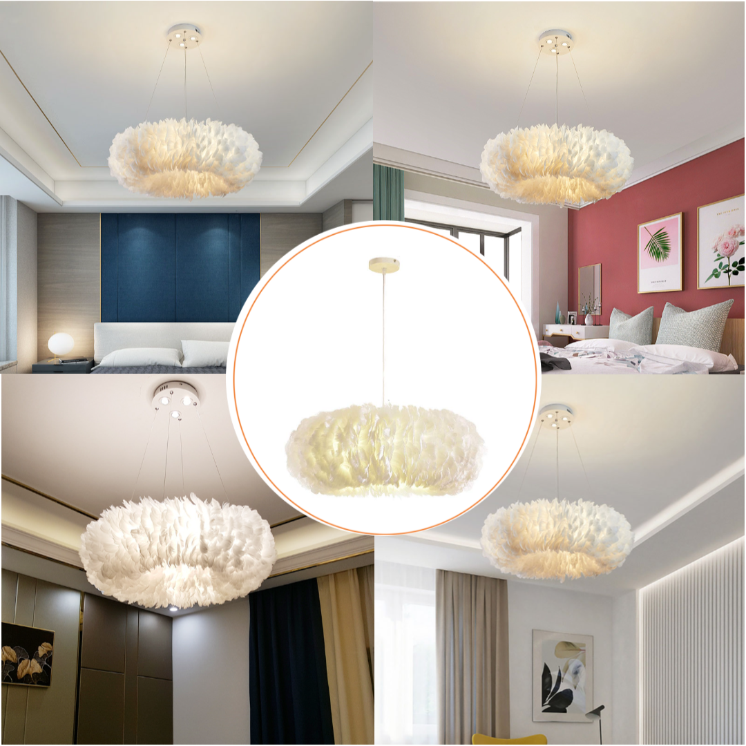 - Add some flair to your house with this charmingly fluffy feather pendant light. This unique light fixture can light up a whole room.