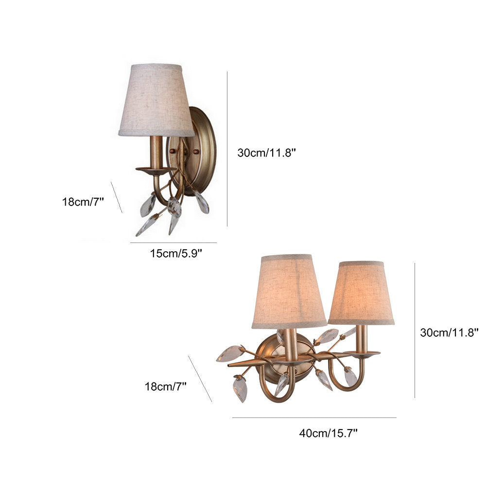 Tapered Bathroom Vanity Light Fixture Vintage Fabric 3 Lights Brown Wall Mount Light