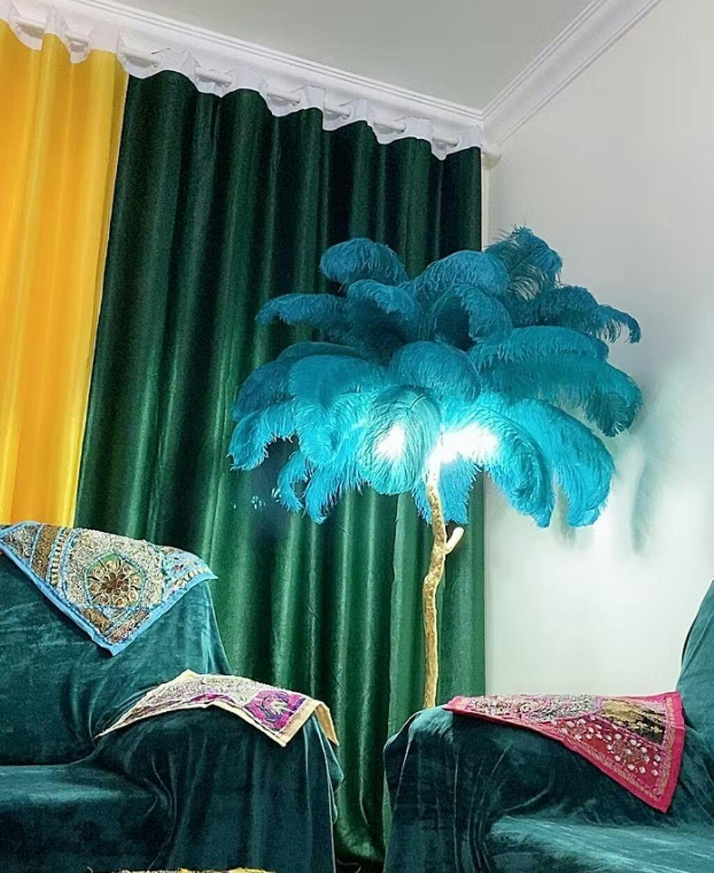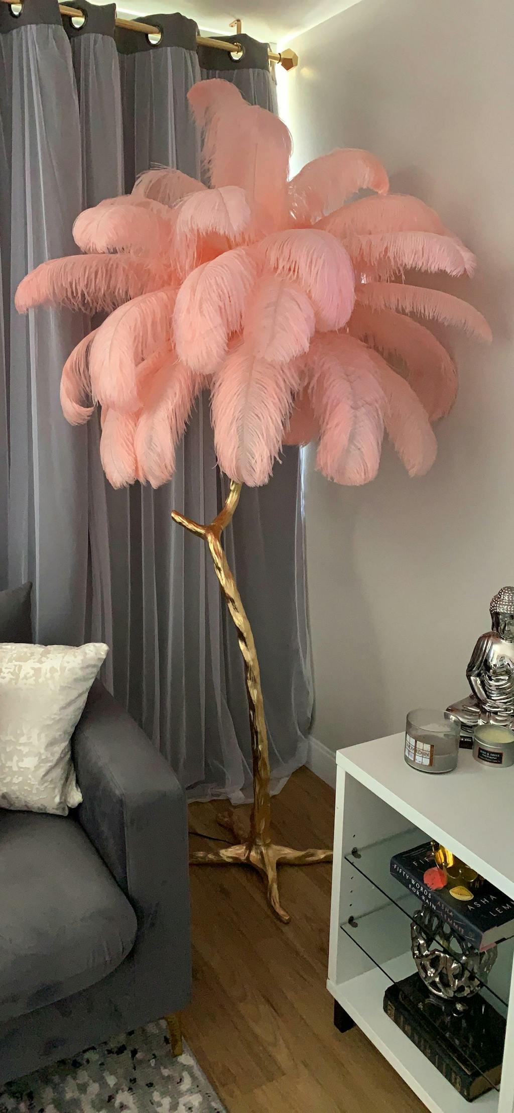• Decorate your room and complete it with a tropical-inspired tree shape Palmera floor and table lamp. The body is masterfully shaped to imitate the palm tree, and decorated with leaf-like ostrich feathers on top to create tropical motives in your space.