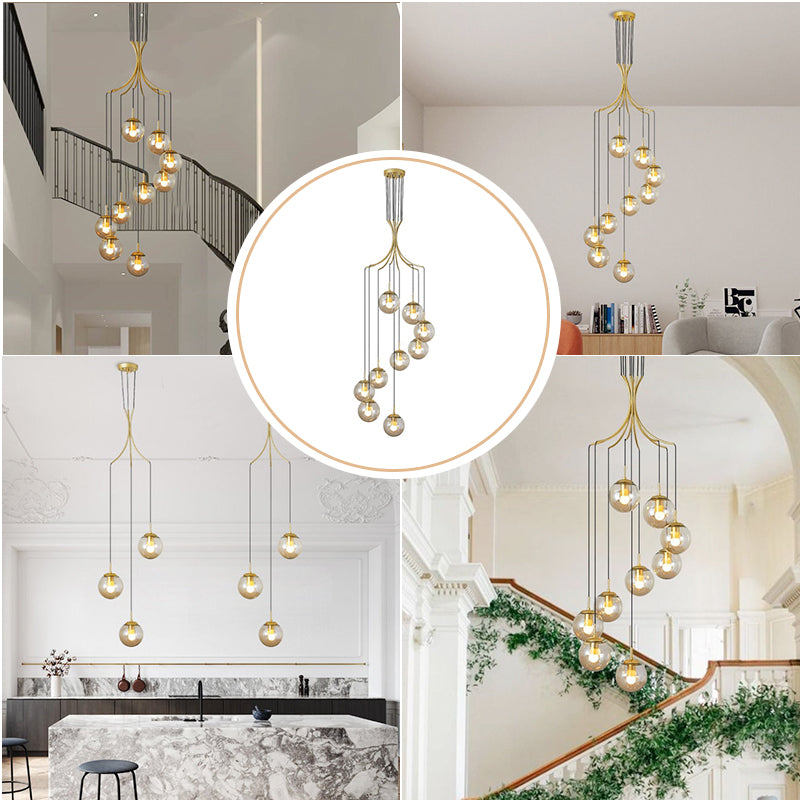 Glass Pendant Light Bubble Spiral Staircase Ball Brass Chandelier