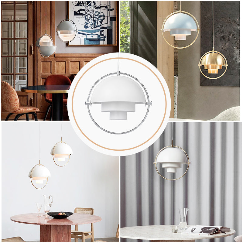 - This elegant lamp plays with geometric shapes. As its name suggests, the lamp has multiple uses and configurations since, by rotating the two lampshades around the cylindrical center, the light can be projected up, down and to the sides.