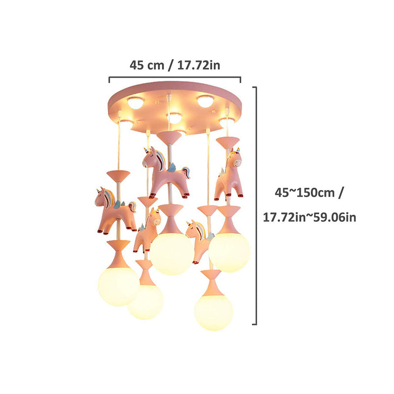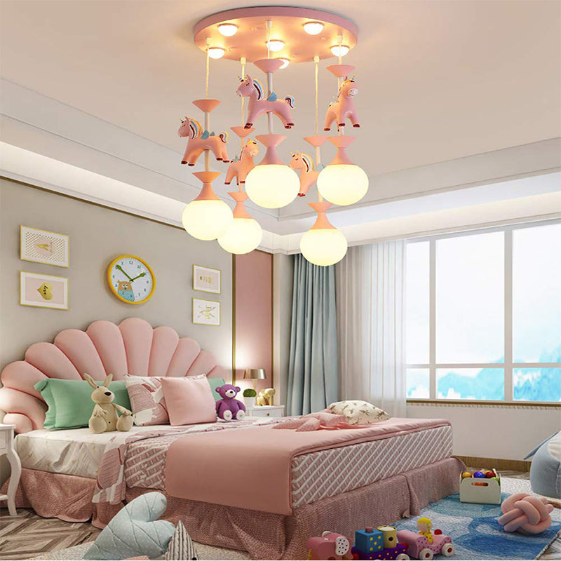 Pink Glass Ball Led Pendant Lights Children Living Room Decoration Hanging Lamp
