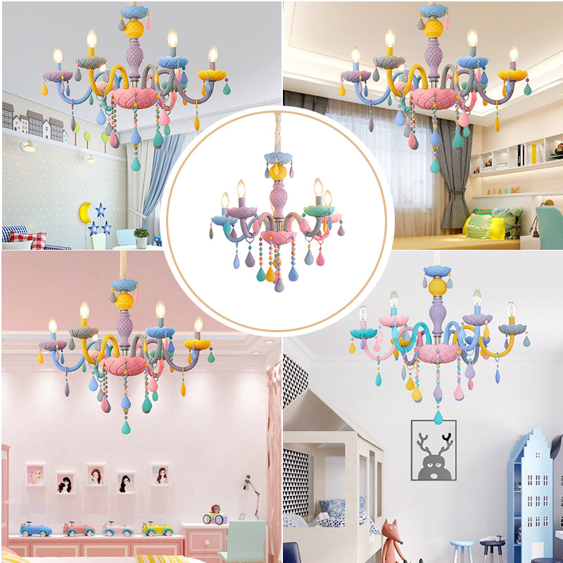 Macaron Crystal Chandelier European Candle Pendant Light Cartoon Princess Room