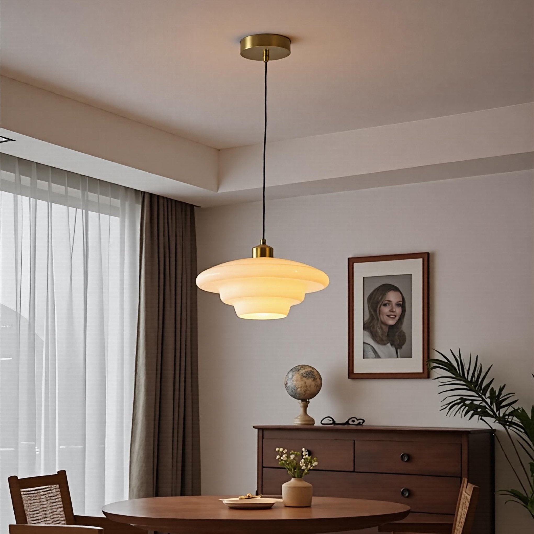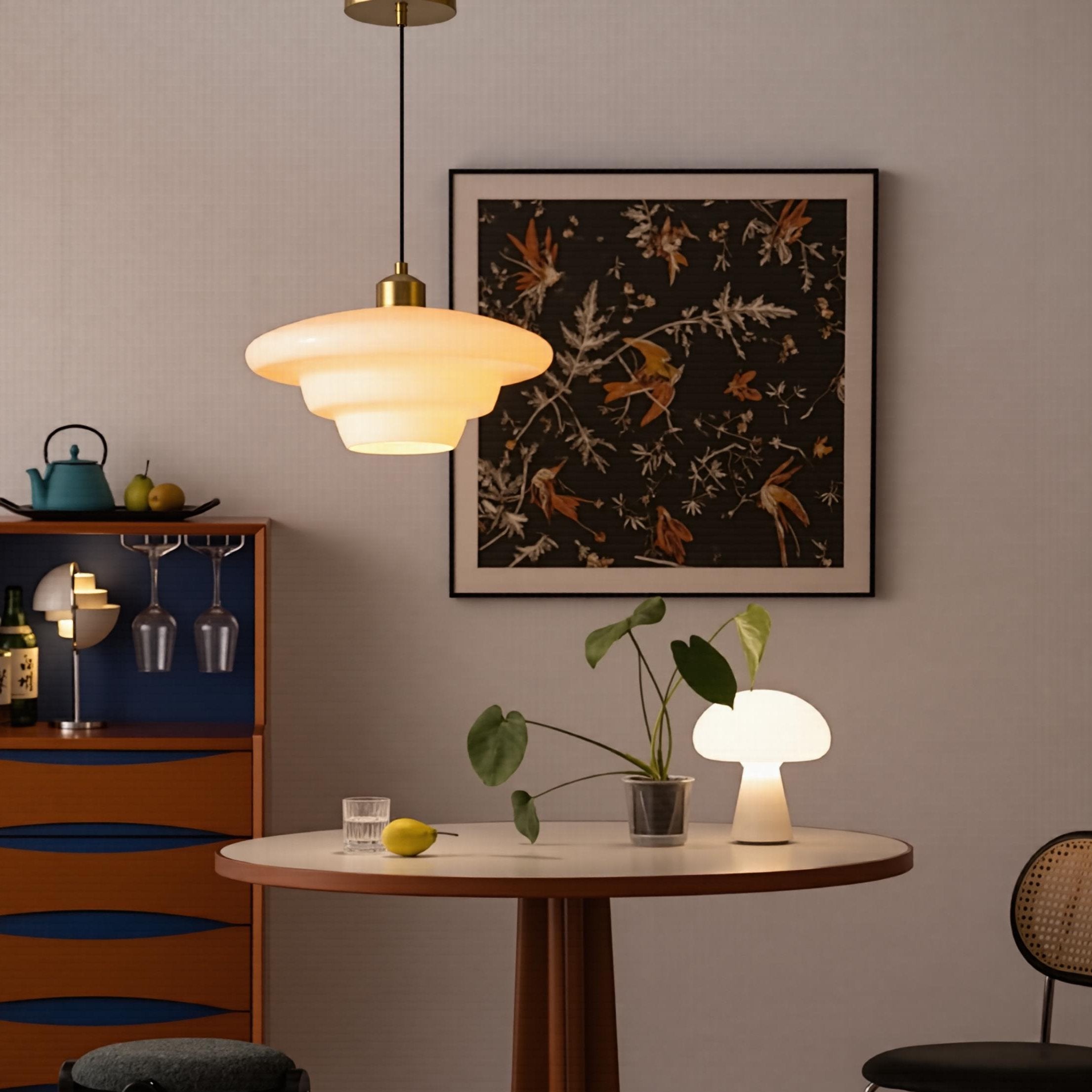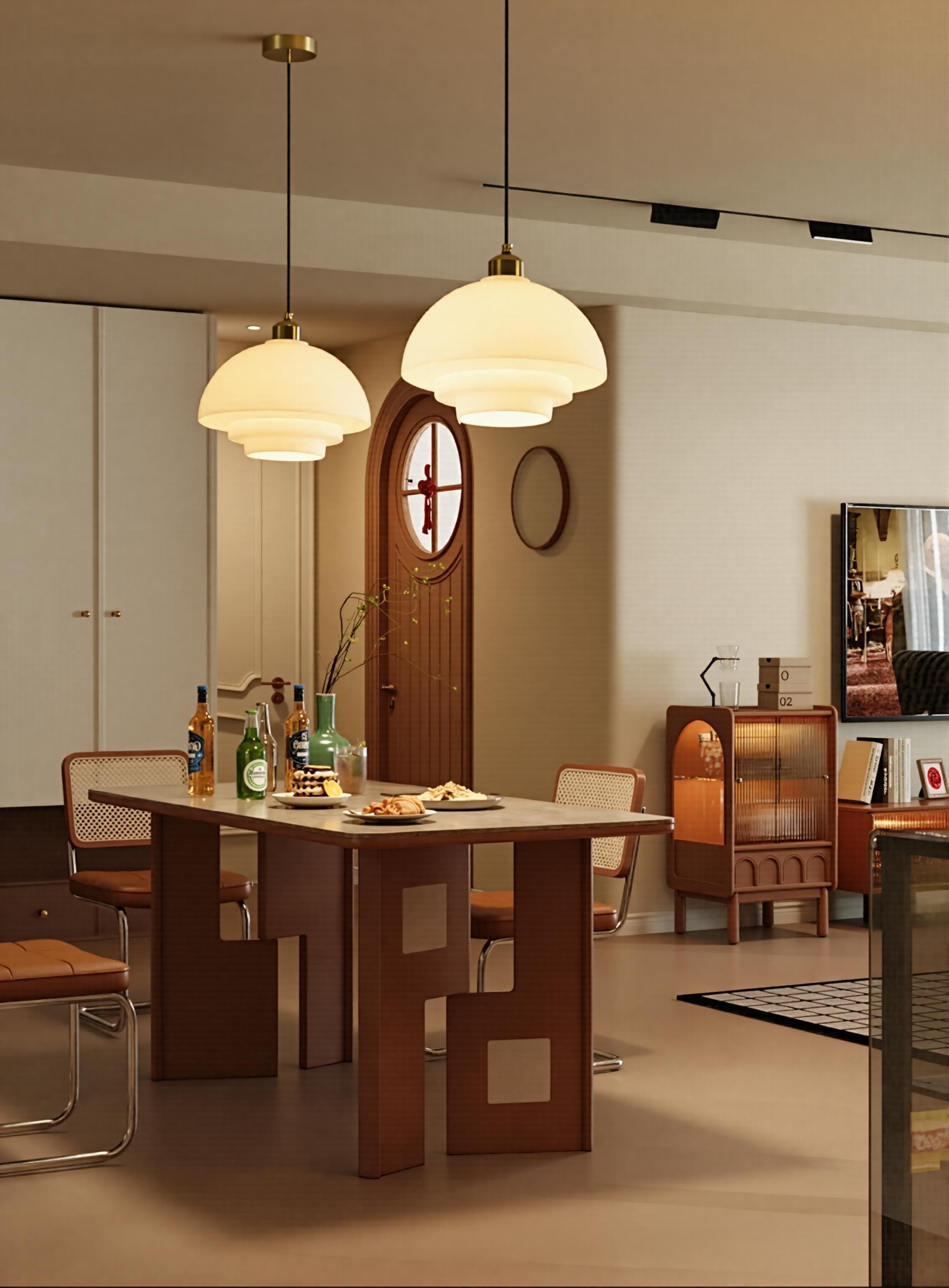 • Elevate any room with this mid-century pendant light, featuring a smooth milk white glass shade that radiates timeless elegance. Handcrafted with care, it delivers warm, ambient illumination while acting as a stylish centerpiece for kitchens, dining areas, living rooms, or bedrooms. Perfect for modern, retro, or contemporary interiors.
