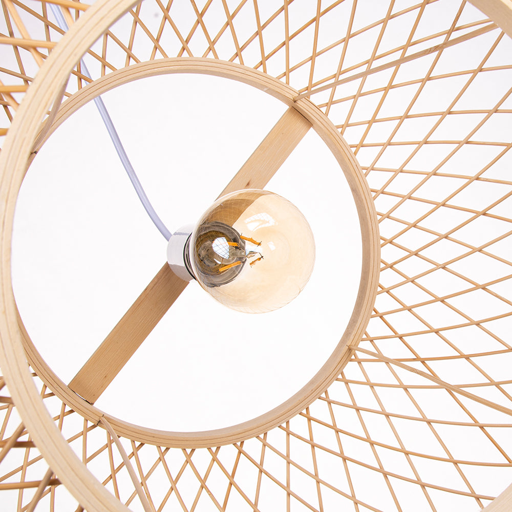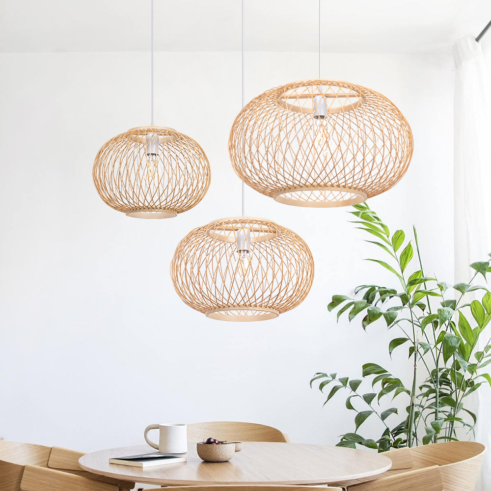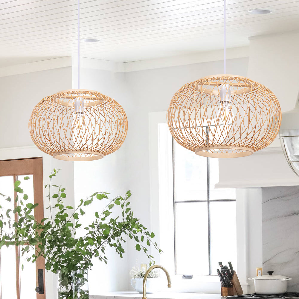 Boho Bamboo Pendant Light Wicker Hanging Lamp for Dining,Kitchen