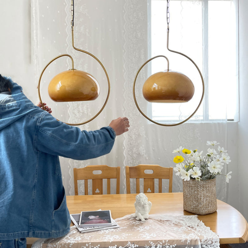 - This amazing vintage pendant light is made of Aluminum alloy. The beautiful warm color shines through the lampshade and gives the room a warm sense of ambiance... retro and beautiful! suitable for any ambiance! Perfect for all retro lovers.?