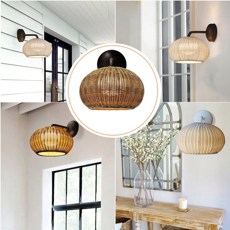 Rattan Wall Lights Globe Wall Lamp Bamboo Japanese Furniture Mushroom Light