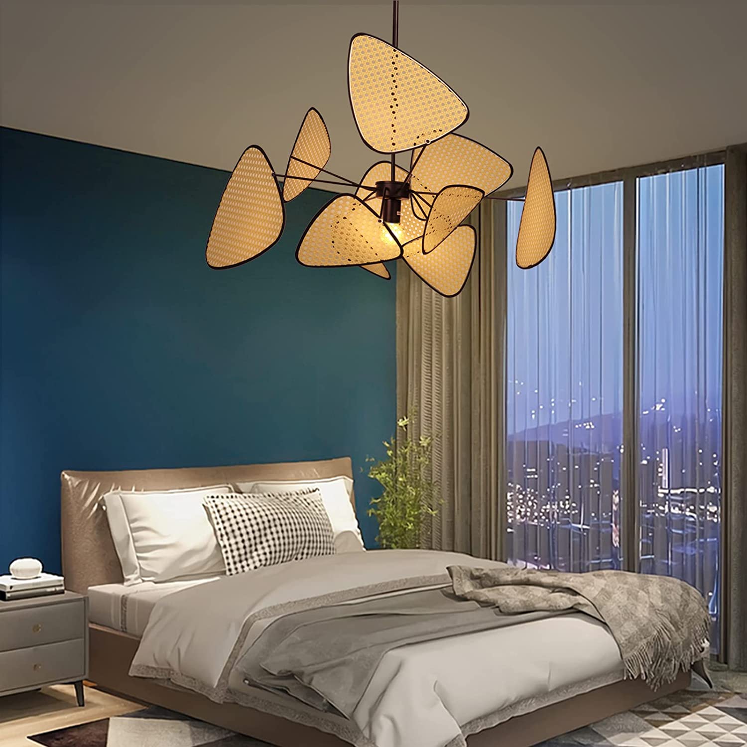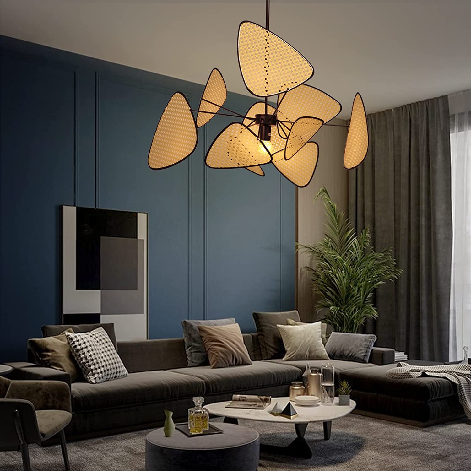 Modern Rattan Pendant Light – Artistic Multi-Leaf Woven Chandelier for Dining & Living Room