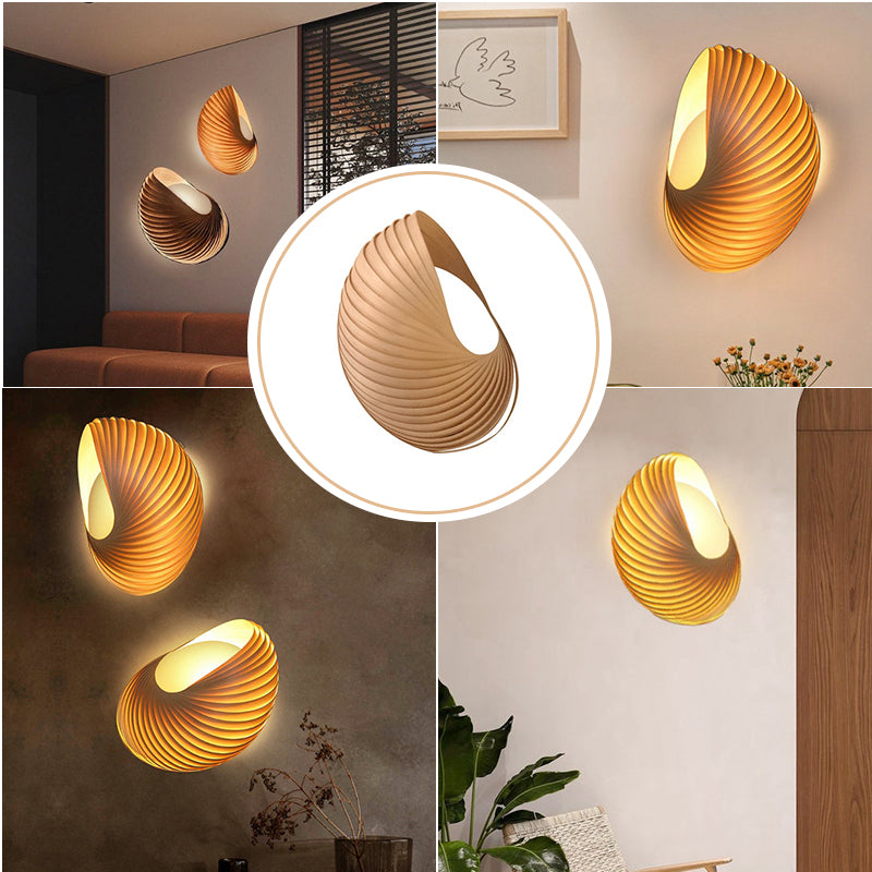 Shell Plug In Wall Sconce Wood Lampshade Art Sconce Light