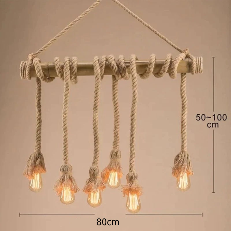 Vintage Bamboo Rope Chandelier Hemp Rope Pendant Lamp